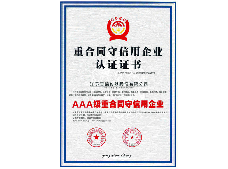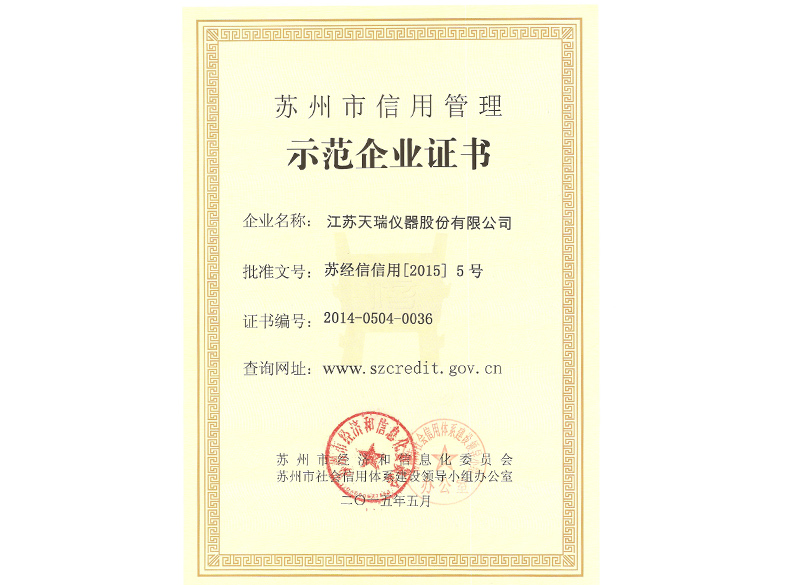 蘇州市信用管理示范企業(yè)證書(shū)