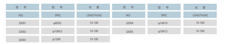 產(chǎn)品可用于工業(yè)機器人、氣動(dòng)工具、裝配廠(chǎng)氣壓工具、帶壓輸送管道,可過(guò)水及其它流體,也可做真空吸管,金困及電子產(chǎn)品的防護外套,裝飾品等。產(chǎn)品具有極好的柔軟性,彎曲半徑小,良好的抗震性,工作濕度及工作壓力范圍較寬。具有極好的化學(xué)性能,壓力損失極小,硬度恒定,使用壽命長(cháng)。具有無(wú)毒,無(wú)味等特點(diǎn)。顏色種類(lèi)多,易于管路識別。