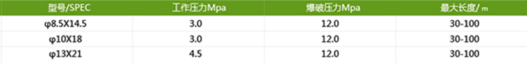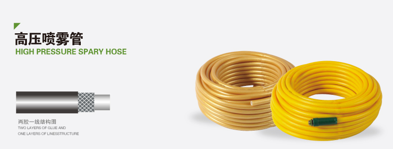 高壓噴霧管內層采用抗酸堿及耐藥型塑料,中層編織高密度、高拉力纖維,可抗160公斤爆破壓力,易于操作,靈活耐磨。外皮添加UV抗紫外線(xiàn)劑,烈日下暴曬不易龜裂??砂凑湛蛻?hù)要求制作各種規格以及國際標準接頭。