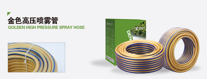 高壓噴霧管內層采用抗酸堿及耐藥型塑料,中層編織高密度、高拉力纖維,可抗160公斤爆破壓力,易于操作,靈活耐磨。外皮添加UV抗紫外線(xiàn)劑,烈日下暴曬不易龜裂??砂凑湛蛻?hù)要求制作各種規格以及國際標準接頭。