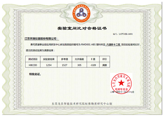 附錄1:實(shí)驗室間比對合格證書(shū)(六溴環(huán)十二烷)