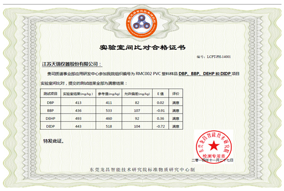 錄2:實(shí)驗室間比對合格證書(shū)(DBP、BBP、DEHP)