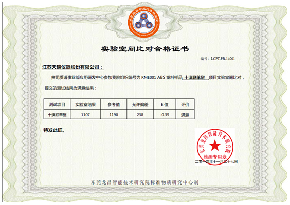 附錄3:實(shí)驗室間比對合格證書(shū)(十溴聯(lián)苯醚)