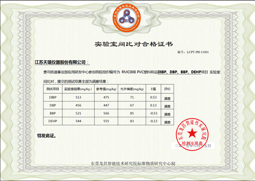附錄1:實(shí)驗室間比對合格證書(shū)(塑化劑)
