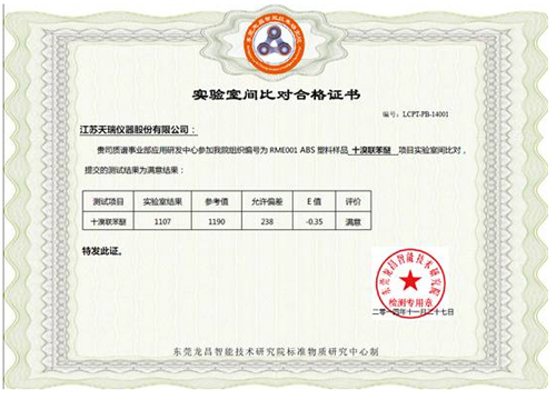 附錄2:實(shí)驗室間比對合格證書(shū)(多溴聯(lián)苯醚)