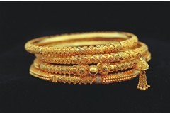 就是把黃金打制成極薄的金箔,包在以銅、銀、鋅、鎳等為基體的材料上,加工成各種飾品給人以黃金相同的感覺(jué)。飾品上往往打24KF、18KF印記。