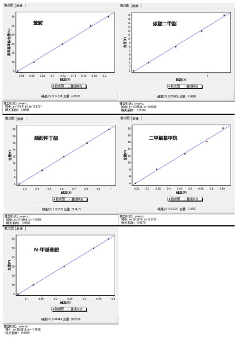 圖1 汽油中5種非常規添加物校正曲線(xiàn)
