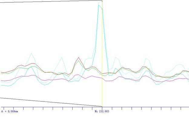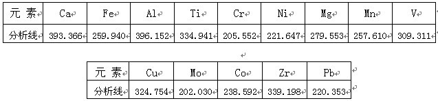 根據ICP軟件譜線(xiàn)庫提供所有元素不同譜線(xiàn),首先選擇被測元素靈敏度高的譜線(xiàn),其次考慮不受樣品基體及被測元素相互之間干擾小的譜線(xiàn)的原則,選擇分析線(xiàn)如下。
