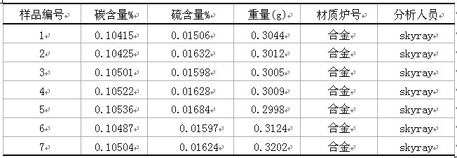 試驗數據表明:高頻紅外碳硫儀CS-168型測試有色金屬及合金中的碳硫含量,結果準確,且重復性好,簡(jiǎn)單,快速?梢詮V泛的應用在各種各樣的合金樣品中。