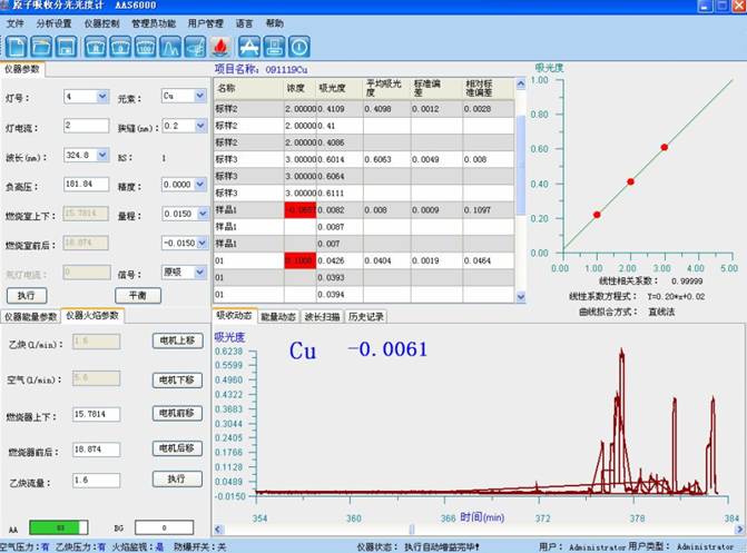 樣品測試:于原子吸收光譜儀波長(cháng)324.8nm處,使用空氣-乙炔火焰,以水調零,測量試液的吸光度,減去隨同試料的空白試驗溶液的吸光度,從工作曲線(xiàn)上查出相應的銅濃度。