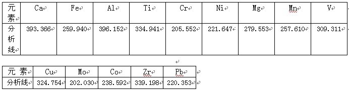 根據ICP軟件譜線(xiàn)庫提供所有元素不同譜線(xiàn),首先選擇被測元素靈敏度高的譜線(xiàn),其次考慮不受樣品基體及被測元素相互之間干擾小的譜線(xiàn)的原則,選擇分析線(xiàn)如下。
