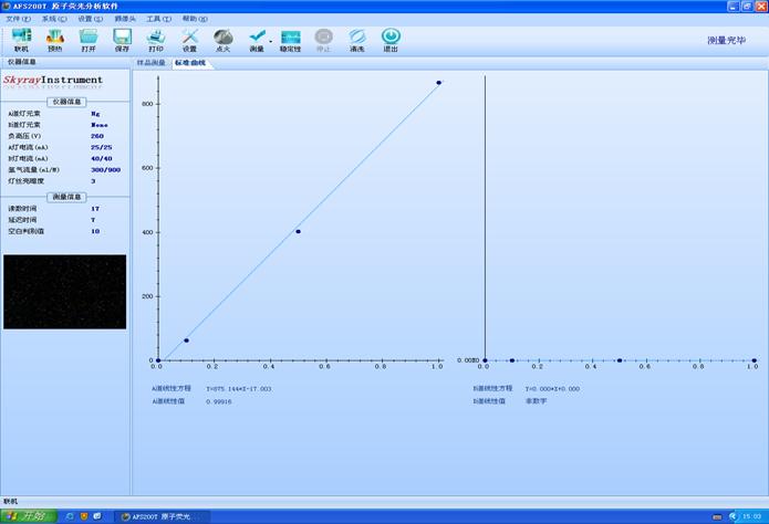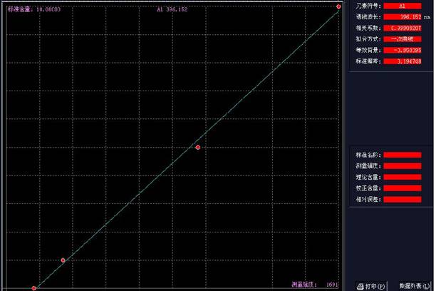 (A道線(xiàn)性方程:Y=875.144*X-17.003);(A道線(xiàn)性值:0.99916)見(jiàn)圖1