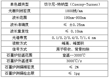 表3.AAS6000原子吸收光譜儀主要技術(shù)參數