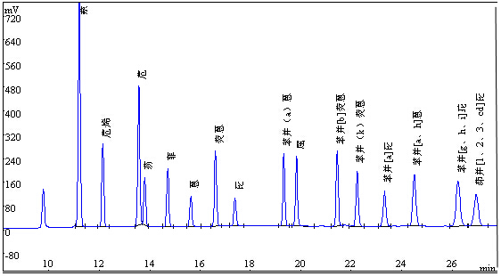 圖1.16種多環(huán)芳烴標準溶液色譜圖