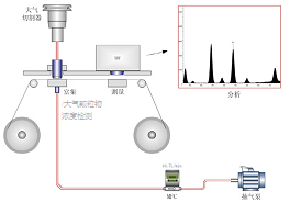 儀器以恒定的工況流量將空氣吸入顆粒物切割器中,以PM2.5為例,動(dòng)力學(xué)直徑在2.5um附近及以下的顆粒污染物進(jìn)入到儀器的富集系統中。經(jīng)過(guò)一段時(shí)間的富集后,富集系統自動(dòng)切換成β射線(xiàn)分析系統,利用β射線(xiàn)的衰減與顆粒物的質(zhì)量濃度成指數的關(guān)系,對顆粒物的質(zhì)量濃度進(jìn)行分析。然后卷膜系統地將富集有空氣顆粒物的濾紙移動(dòng)到X射線(xiàn)熒光分析系統,分別利用X射線(xiàn)熒光的能量和強度對顆粒物中的元素成分進(jìn)行定性和定量的分析。