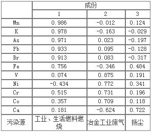 通過(guò)主成分分析與相關(guān)性分析等模型處理,可以告訴政策制訂者污染來(lái)自哪里、貢獻比率,為源解析工作提供輔助成果。天瑞儀器EHM-X200大氣重金屬監測儀對北方某城市長(cháng)時(shí)間段大氣重金屬在線(xiàn)分析儀測量的數據進(jìn)行主成分分析后,得到表1。