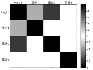 為了進(jìn)一步研究PM2.5與大氣重金屬之間的關(guān)聯(lián),并為PM2.5的控制提供方向,我們通過(guò)已經(jīng)劃分的三個(gè)組分與大氣PM2.5濃度進(jìn)行相關(guān)性分析。結果如圖5,發(fā)現該地區主要影響PM2.5的污染源為組分2(冶金工業(yè)廢氣)。