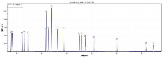 測定方式:TIC(FULL SCAN)定性(掃描范圍:45-300amu),SIM模式定量。