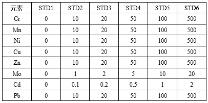 采用ICP-MS2000E電感耦合等離子體質(zhì)譜儀測定土壤標準物質(zhì)中Cr、Mn、Ni、Cu、Zn、Mo、Cd、Pb八種金屬元素含量,檢出限在2.85-117.76 ng/L之間,穩定性在0.60%-3.68% 之間,各元素測試結果與標準值相符,能夠滿(mǎn)足第三次全國土壤普查中關(guān)于電感耦合等離子體質(zhì)譜法檢測上述各元素的要求。