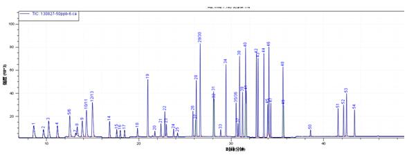采用GC-MS 6800氣相色譜-質(zhì)譜聯(lián)用儀,測試土壤、沉積物或固體廢物中的多環(huán)芳烴、多氯聯(lián)苯、有機氯農藥、揮發(fā)性有機物及鹵代烴類(lèi)物質(zhì),各物質(zhì)分離效果良好,靈敏度高,線(xiàn)性范圍寬,能達到較好的測試效果。