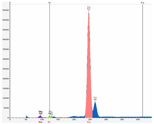 以下使用EDX 3600B型對白云石國標樣GBW07216A實(shí)際測試的所得的譜圖,工作曲線(xiàn)等相關(guān)數據: