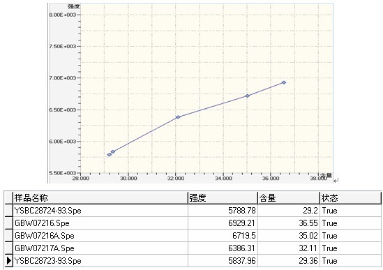 ② . 螢石國標樣Si的工作曲線(xiàn)與相關(guān)數據