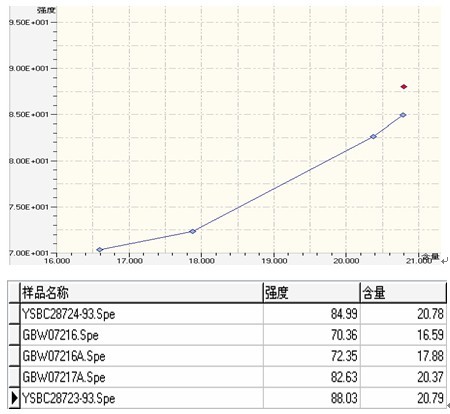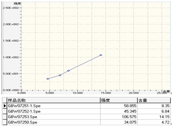③ .白云石國標樣Mg的工作曲線(xiàn)與相關(guān)數據