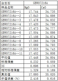④ .實(shí)際測試白云石國標樣GBW07216A的數據如下為