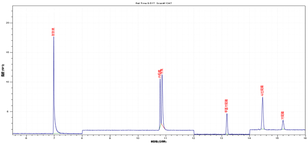色譜柱:DB-5MS(30m*0.25mm*0.25um),柱流量:1.0mL/min