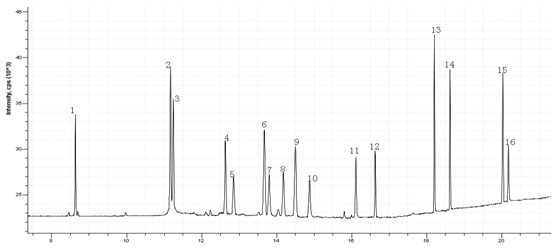 進(jìn)樣方式:不分流進(jìn)樣,不分流時(shí)間1min,分流比20:1