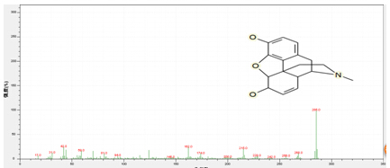 利用罌粟殼生物堿的理化性質(zhì),樣品在強酸環(huán)境下(pH:1-2),采用氣相色譜質(zhì)譜聯(lián)用儀進(jìn)行檢測。采用保留時(shí)間和標準質(zhì)譜圖特征離子進(jìn)行定性,外標法定量。